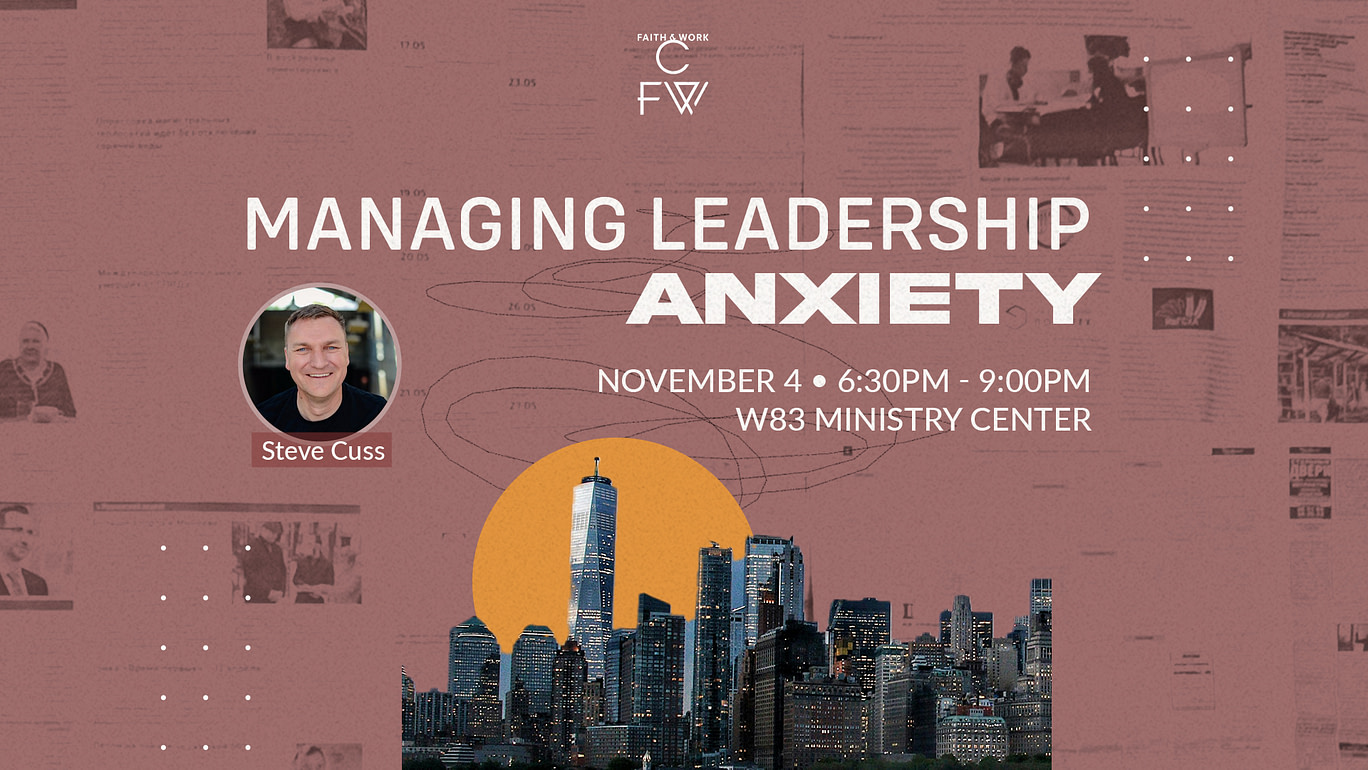 The Center for Faith & Work invites you to Managing Leadership Anxiety, an interactive workshop where you’ll gain essential tools to transition from being controlled by anxiety to effectively managing it. Led by author and expert Steve Cuss, this workshop will equip you to: