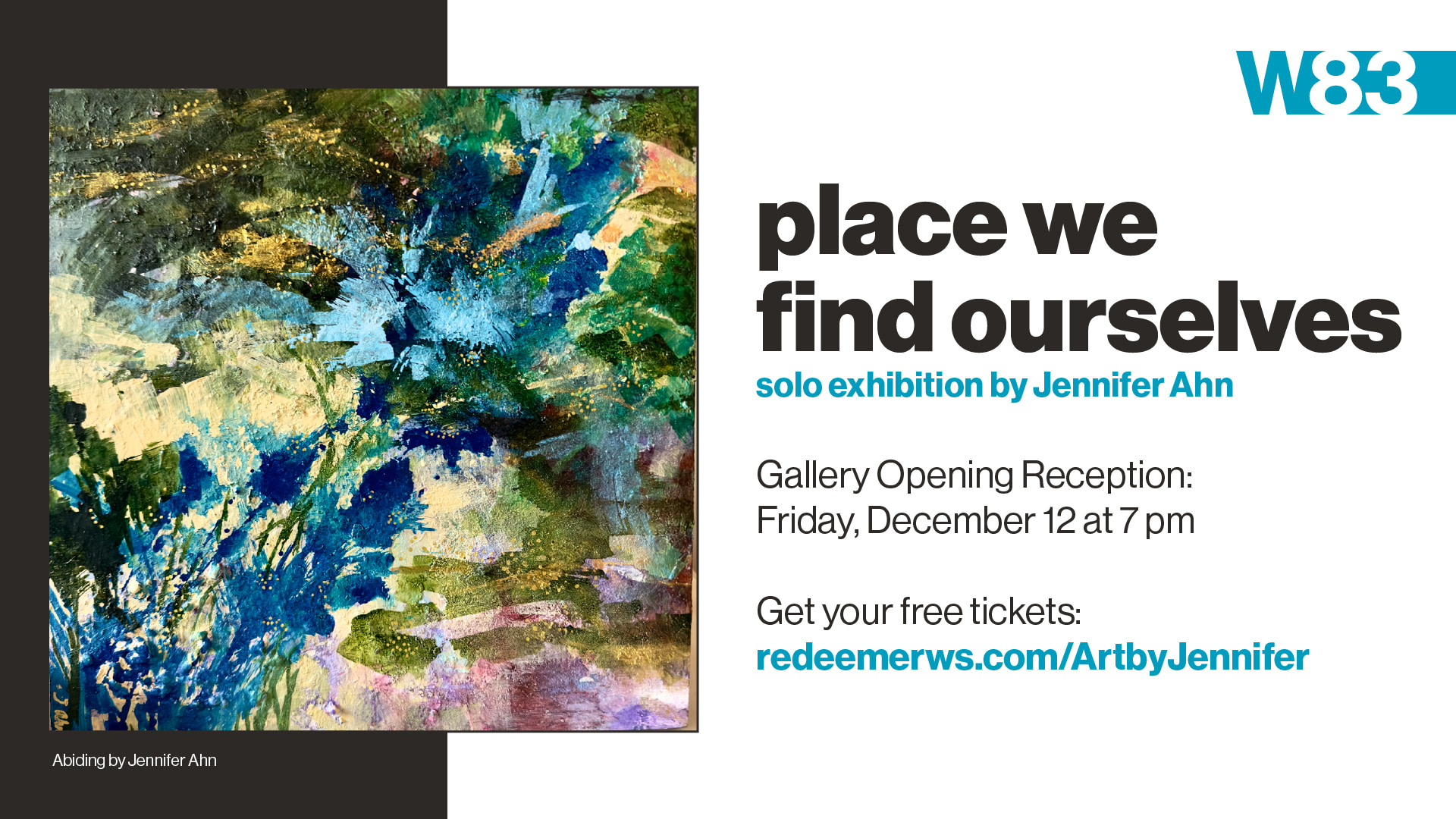 Step into the captivating world of Jennifer Ahn’s solo exhibition, Place We Find Ourselves, and experience her artistry firsthand. Join us at the W83 Ministry Center for an immersive in-person event, where each work invites reflection and discovery. Don’t miss the opportunity to connect with this artist’s compelling creations.*Attendees will have the opportunity to purchase artworks…
